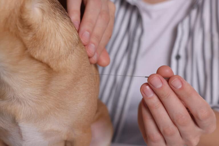 Dog paw with some acupuncture needles